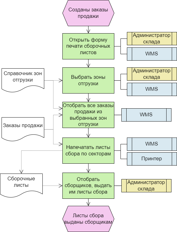 - Есть ли временные нормы производства результата и передачие его потребителям? Нет. Открытие формы печати сборочных листов и последующий выбор зон доставки (заказы которых будут собираться) не регулируется ни системно, ни физически.