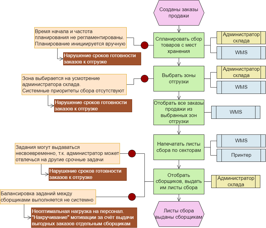 Кейсы из практики / Описание и анализ текущего состояния процесса комплектации товаров в клиентские заказы на складе розничного дистрибьюетора