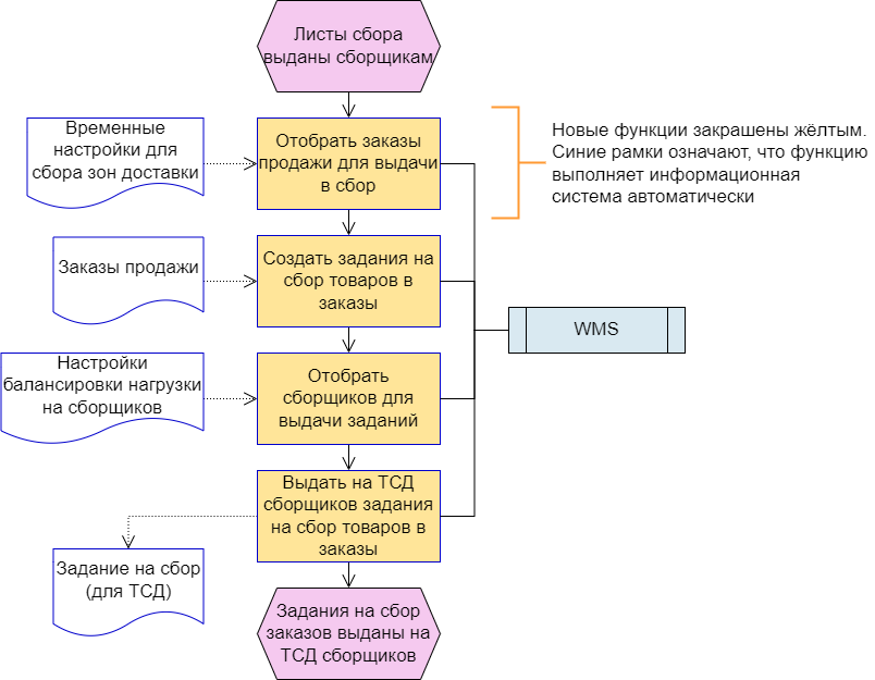 - Если дата доставки соответствует настройке для зоны доставки заказа → Создаёт задание на сбор товаров в заказ.